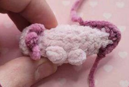 Crochet the tail directly onto the axolotl, starting with a slst on the bottom side (about 3 sts from the tip of the tail).
