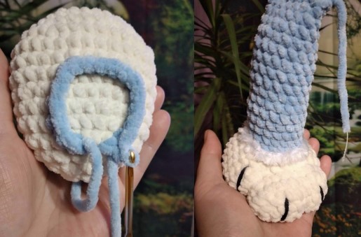 • 10) sew the tail (you can sew it as you like) 36sc, 7sc together with the tail, 5sc (48)
