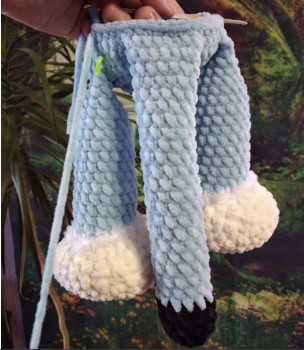 • 9) Sew lower legs: 7sc together with the presser foot, 17 sc, 7sc together with the second presser foot, 17sc (48)