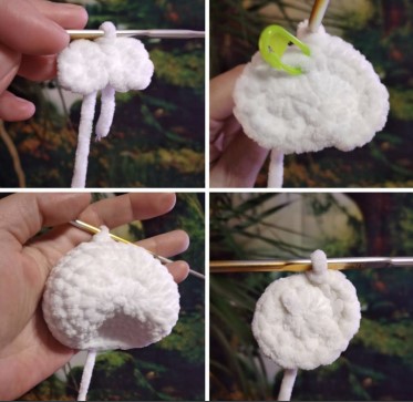 • 23) 6sc with foot, 6sc, 6sc with second foot, 6sc (24)