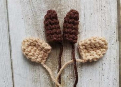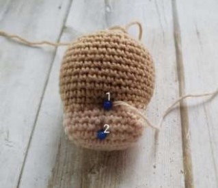 Sew on the horns on rows 18 and 19 (i.e. between rows 17 and 20) 3 sc apart.