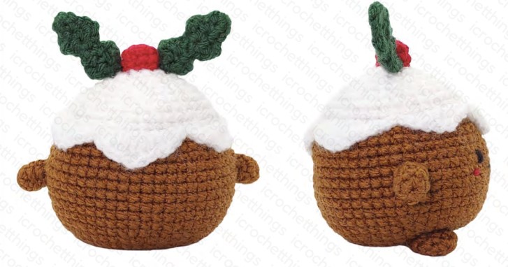 I continue to bring you wonderful amigurumi patterns for christmas. Today I am with you with a wonderful Christmas pudding amigurumi toy. This toy, which you will make using brown, white, green and red yarn, belongs to icrochetthings, also known as a great pokemon designer. 5 different colors of yarn are used in the making of the toy.