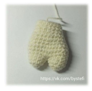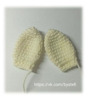 Fold the edge in half, crochet 6 sc for both sides of the part. Similarly, we crochet the second ear. Sew to the bunny.