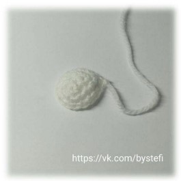 1 Rnd: we make a chain of 5 ch, we crochet 3 sc along the chain (from the second loop from the hook), 4 sc in the last st, we continue crocheting on the other side of the chain: 2 sc, 3 sc in the last st (12)
