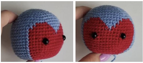 Place safety eyes between rounds 16 and 17, 9 st apart.