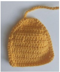 4. Attach the cape around the neck. Fasten the chained portion with two stitches if red yarn below the head.