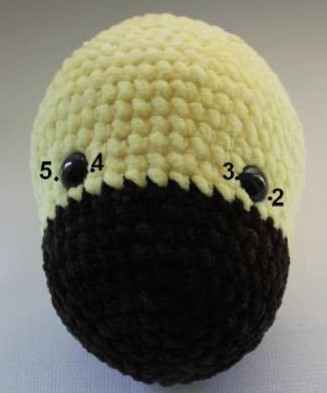 between 11 and 12 rows insert eyes at a distance of 7-8 st