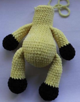 Round 14.10 sc, dec, (2 sc, dec) repeat 5 times, 10 sc (36) – there will be a tummy here, check that the dec is in the center, between the legs