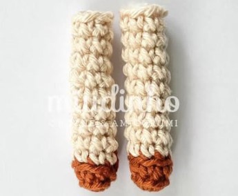 3. 2 sc, 1 inc [3 sc taking the loops of the leg of the 1st leg], 6 sc, 1 inc, 4 sc, 1 inc, 5 sc [3 sc taking the loops of the 2nd leg] 1 sc, 1 inc, 2 sc (34)
