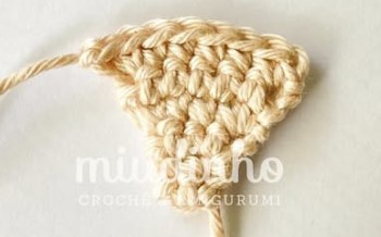1. Make 10 ch, start from the 2nd ch with 1 inc, 7 sc, 2 inc, 7 sc, 1 inc (22)