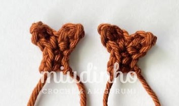 Make 5 chains, start in the 2nd chain with 2 sc, go up 3 chains, start in the 2nd chain and make 2 sc, 2 sc.