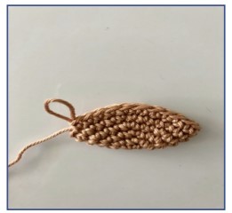 Fasten off and leave a tail to sew the ear to the Head. Make a second ear.