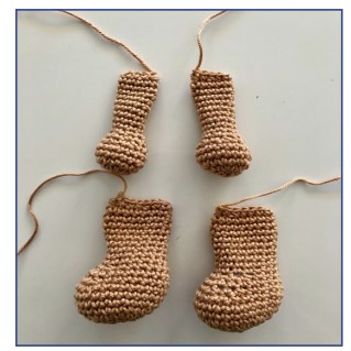 R12 – 20: 16sc (16sc) stuff the foot, not the leg. Fold the leg and crochet the opposite stitches together with sc. Make a second leg and sew to the body. (connect the feet together with a small stitch if you like)
