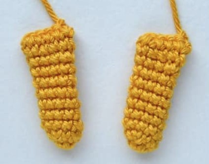 Sew on the ears. Sew the arms on rounds 14-16. Sew the legs on rounds 23-26.