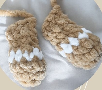 – Chenille Chunky yarn in two colours. I used Teddy (1 100g ball) and White (1 100g ball). These ball will allow you to make up to 2-3 men.