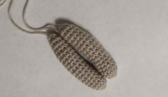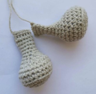 Make another 4-5 sc, fold the piece in half and sew together for both sides 5 sc. Leave a yarn for sewing.