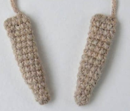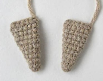 7 ch, start in the second chain from the hook: 1 inc, 4 sc, 3 sc in the last st, turn and continue on the other side of the chain, 5 sc (14)
