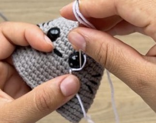 Embroider the whiskers on the sides of the eyes at a distance of 2 sc.