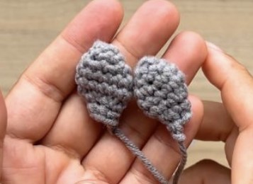 Sew the ears on the third row