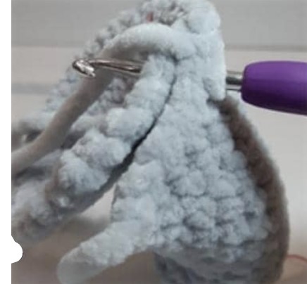 Continue crocheting the head in the round: