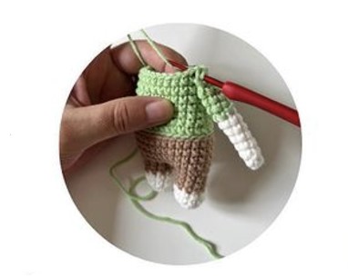 Make another 5sc and place the marker in the next stitch. In the next row we will attach the arms