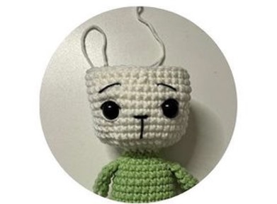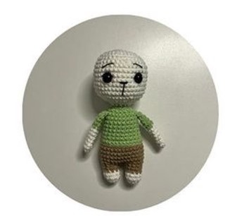 In addition to all this, the toy also has a beautiful bow tie. The use of bow ties in amigurumi toys is actually a very common choice. If you are ready, you can start building this toy with big eyes and thin eyebrows.