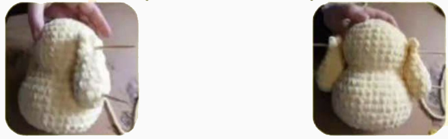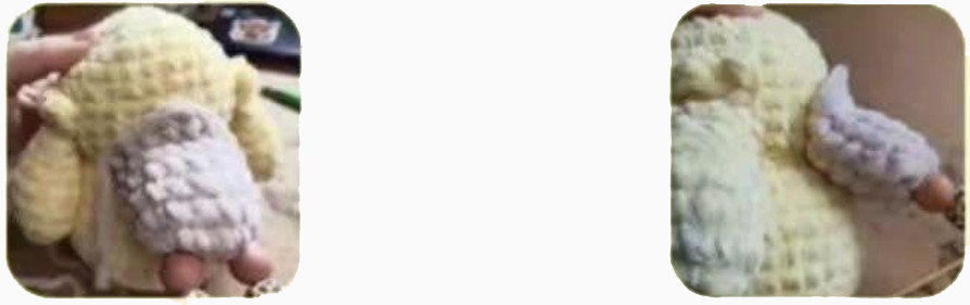 4: Sew the tail at the back of the body, wide part at the bottom R17-20