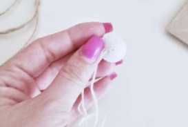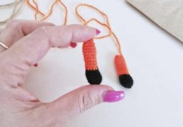 Fold the piece in half and sew on both sides. Cut the yarn, leaving the long end to be sewn on.
