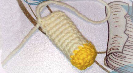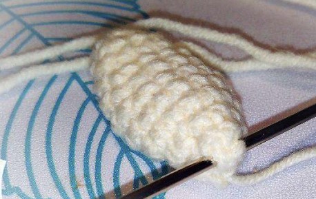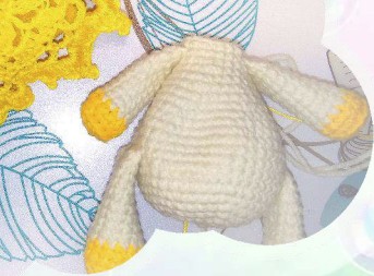 Note: the toy will look neater if the color change on both legs is placed at the back.