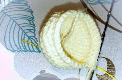 Do not stuff the ears, fold in half, crochet 6 sc, fold in half again, make a few stitches with a needle, secure with a knot, leave a tail for sewing to the head.