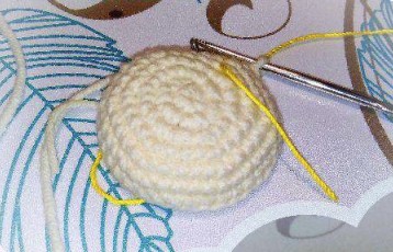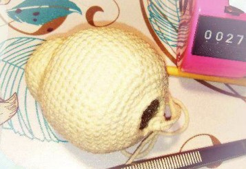 I make the tightening and attach the eyes at the beginning and end of the hdc increases in Round 11.