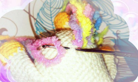 I attached the mane and tail using the same technique as tassels on a scarf.