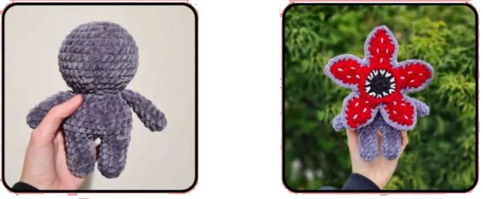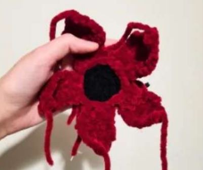The designer recommends using gray, black, and red chenille yarn to make this toy. With this yarn, you can crochet the toy using a 5 mm hook. When making the crochet toy, we will first crochet the flower. After completing all the steps for the flower, you can make the toy’s legs, body, and arms. Once you assemble and sew the pieces together, the Demogorgon character will be ready.